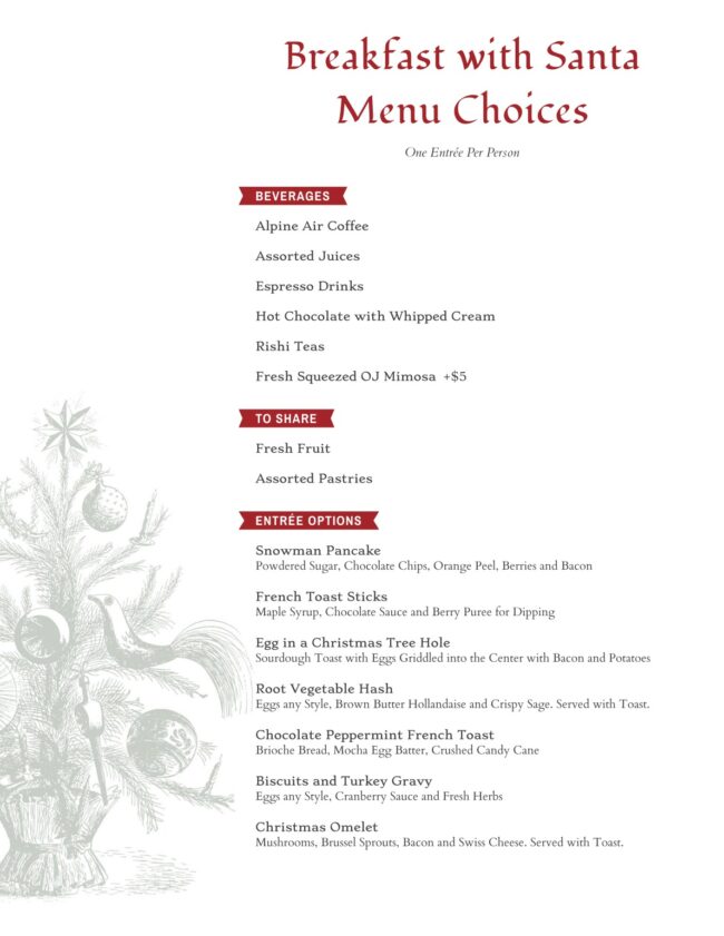 Festive menu items like Snowman pancakes and chocolate peppermint French toast will be served alongside hot cocoa and an assortment of espresso drinks. The holiday-inspired breakfast that embraces the spirit of the season.