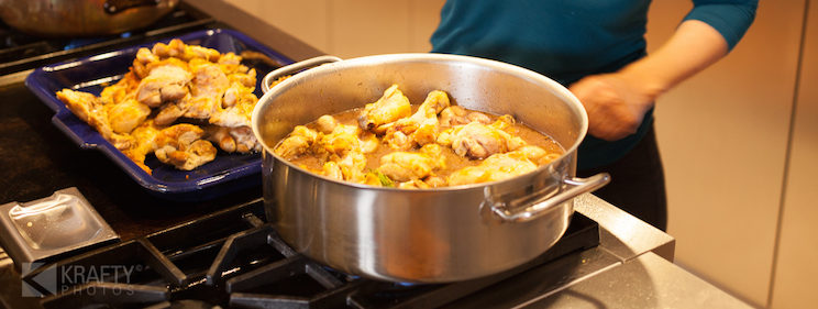 In this season’s Kitchen Views, we featured a South American couple with a kitchen large enough to accommodate their whole family. With seats for 20, this kitchen is home to many family meals prepared after the couple, their children and their grandchildren have called it a day on the slopes. One of their favorite recipes that didn’t make it into this issue? Coq au vin. Filling, inexpensive to prepare (even for a family of 20) and flavorful, we have the recipe for you below. Find more of their recipes, and photos of their stunning kitchen, in Dishing issue 11, on stands now.