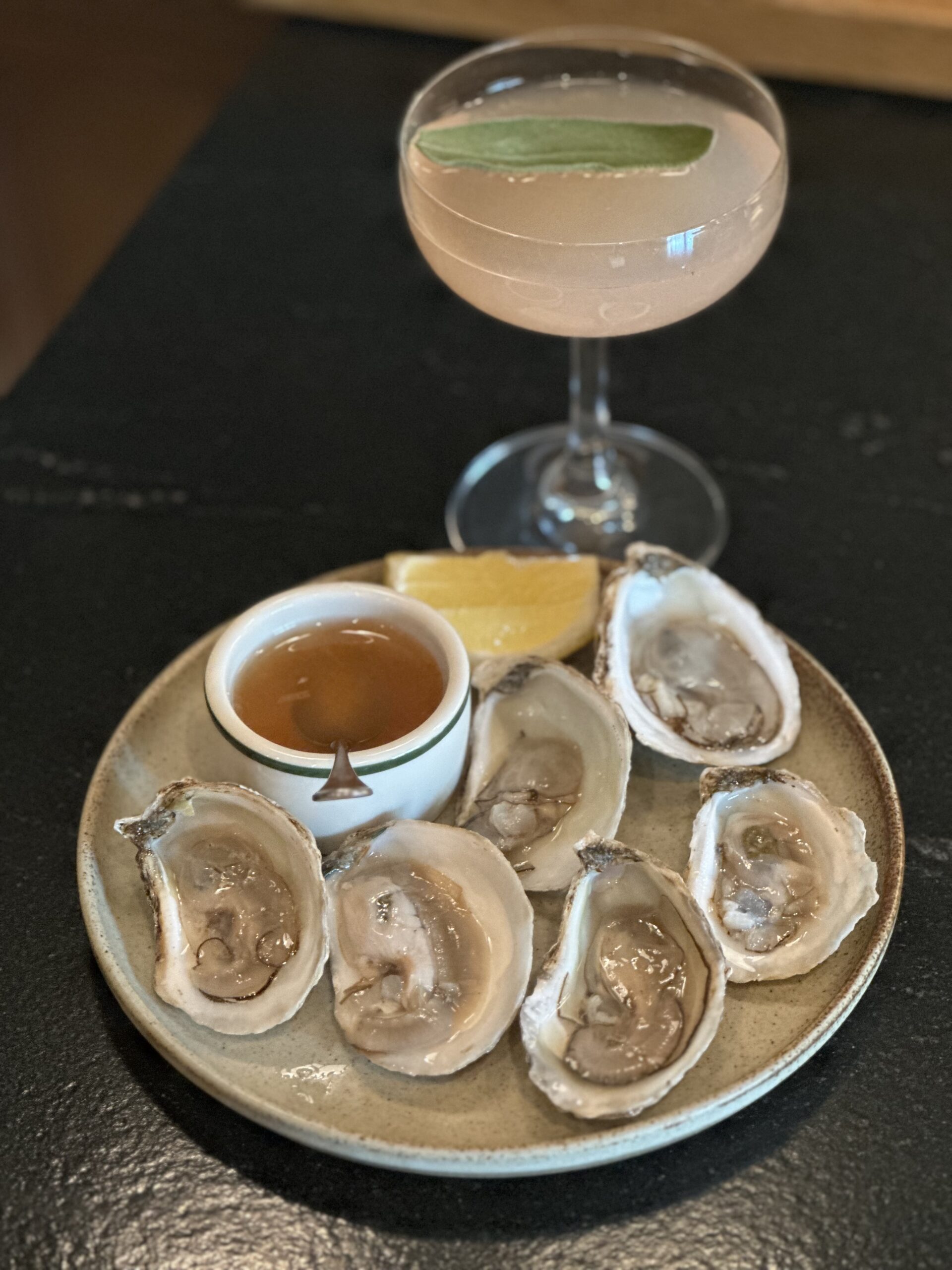 - Coe Tavern’s oysters and Pillow Jets cocktail