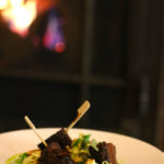 A hidden gem tucked away in the Wyoming Inn, the Whistling Grizzly highlights chef Marc Boussarie’s comforting cuisine. A regional bistro-inspired menu utilizes local farms and ingredients. Chef Boussarie’s French culinary training and managing director Jason Azarpour’s hospitality background result in a five-star dining experience set in a relaxed, approachable atmosphere. The bar features a full wine list, along with classic cocktails and local brews from Melvin Brewing and Snake River Brew Pub. At breakfast, touches like homemade jams and fresh squeezed orange juice elevate the experience. Relax by the fire and dine in style.
