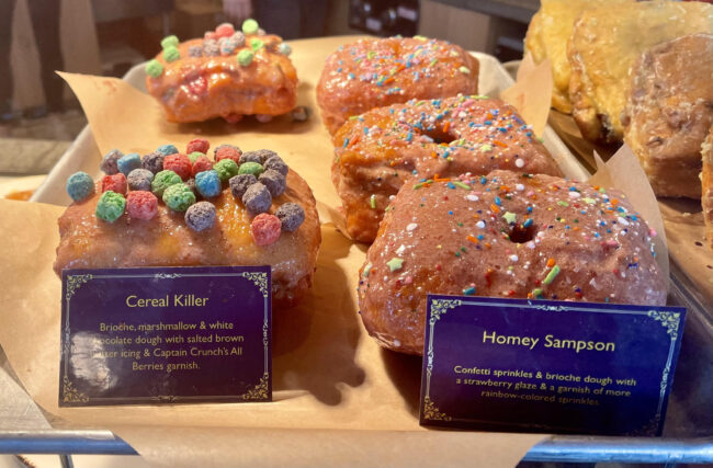 The current flavors that can be found around town are chocolate pistachio, maple glaze with bacon, blueberry white chocolate basil, Plain Jane (just glaze), Cereal Killer (classic glaze with Captain Crunch berries on top) and Homey Sampson, an ode to Homer Simpson with strawberry glaze and sprinkles.