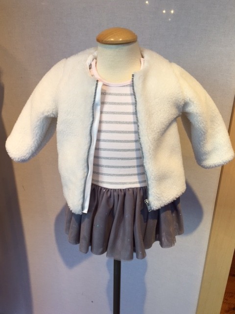 Petit Bateau Striped Tulle Dress ($76) and Blouson Zipper Jacket ($62)