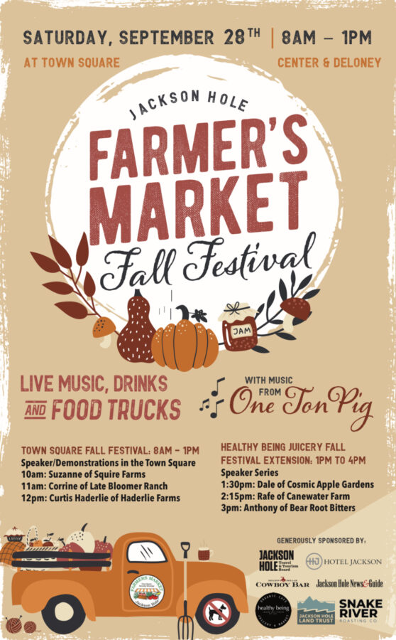 It’s been a summer full of beautiful Saturday mornings showcasing the area’s farmers, producers and vendors on the Town Square. And to celebrate, the Jackson Hole Farmers Market on the Town Square is hosting a special Fall Festival as their farewell to their summer market, this Saturday, Sept. 28.