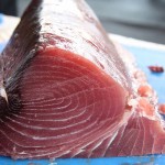 Moving us into Saturday evening’s event after being up for literally 21 hours of work and fun it was back at it at 6 a.m. to butcher 120-pounds of the freshest tuna you could imagine that we turned into some of the best poke ever, including Sam’s special seasonings as well as ogo and some heirloom cherry tomatoes and as always in great food LOTS OF LOVE! Also on Saturday’s menu was tuna cakes with spicy aioli, which was a bonus dish as we waste nothing so the first 200 people were treated to that the last dish was a spicy salmon dish with sticky rice in which Sam taught me the real Japanese preparation and some salmon “bacon.”