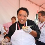 We dished out a couple 1,000 dishes easily breaking down 2, 80 pound tunas on line to show the people how fresh this was from Sam’s sons Chris and Sam Jr. from wherever they were being the pro fishing folk they are all over the world, I heard Australia and San Diego. Tons of Celebrity Chefs, four different locations all over LA one of the cooler Chefs I met was Yo Bu from China, who we worked next to due to open a restaurant in Beverly Hills next year awesome guy had a bunch of family with him hand peeling garlic cloves Saturday a.m. VERY IMPRESSIVE!!! I was able to meet countless Rockstars, from Dean Fearing Mansion on Turtle Creek Texas icon , Stephan Pyles and one of my first few rockers Chef Paul Prudhomme and The Original Chef to the stars Chef Wolfgang Puck and a huge thanks to my friend and mentor in cooking and life, The Honorable Chef Sam Choy Hawaii’s Ambassador to ALL good things Food, Family and Friends we hope to see you next year thanks for the opportunity!