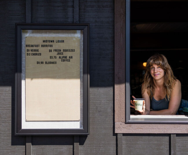 In the mood for breakfast or coffee? Midtown offers two killer breakfast burritos: veggie and chorizo. Pair a burrito with a cup of freshly brewed and locally roasted Alpine Air coffee. The burritos are handcrafted next door at Billy’s Burgers. These burritos are fast on the go and perfect for any morning.