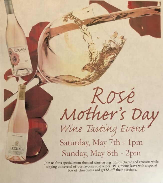 Spirits and Spice on Broadway will host a rosé tasting with cheese and crackers on both Saturday and Sunday. Sign up online for $5, and moms get to leave with a special box of chocolates and $5 off their purchase. Saturday’s event will start at 1 p.m. and Sunday will start at 2 p.m.