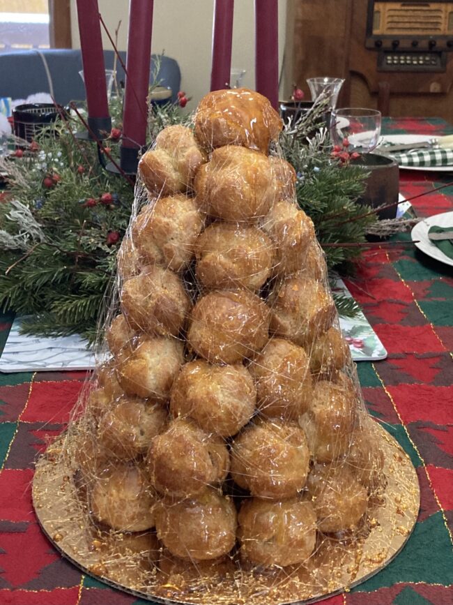 “I like putting out a product that’s a little different,” she said. Over the Christmas holiday she created a croquembouche, which is a traditional French dessert consisting of puff-pastry rolls dipped in caramel and stacked in a cone shape (as seen on many episodes of The Great British Bake Off).