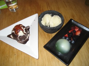 IMG_2257 By Cara Rank | February 4, 2012 Assorted desserts including a molten chocolate cake, green tea ice cream and a dome of mascarpone with fresh berries. ← The Best Restaurant We’ve Never Tried