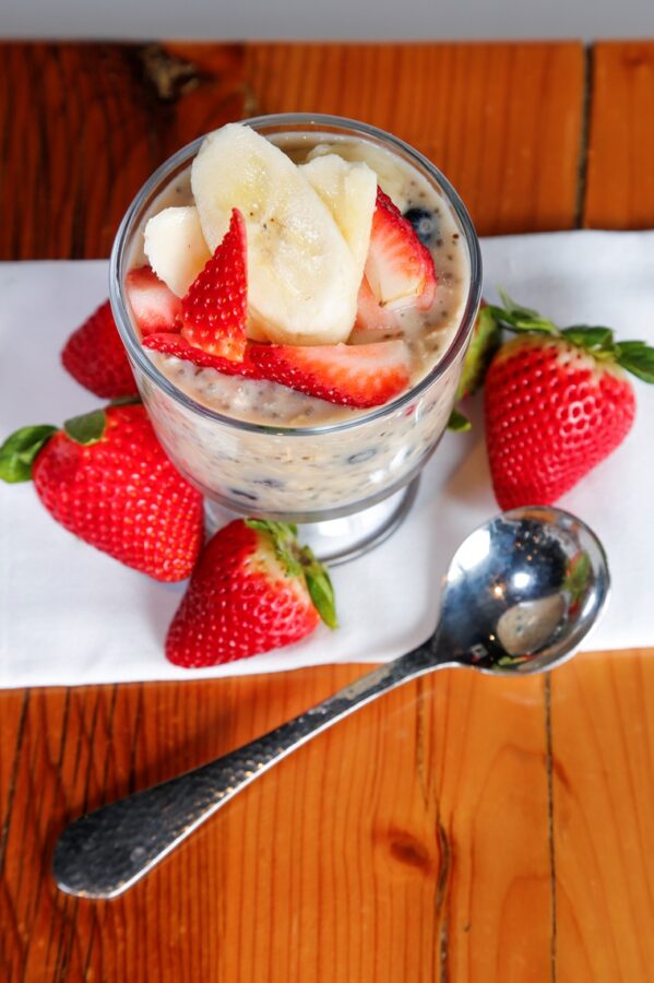 The overnight oats from the Spur Restaurant & Bar combine carbohydrate-packed oats with almond milk, chia seeds, banana, blueberries and strawberries. Chia seeds, when soaked overnight in almond milk, make…