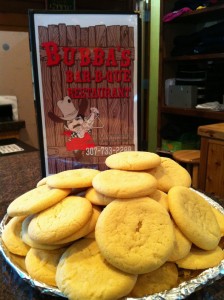 “We sell very few desserts on Thursday,” said Bubba’s BBQ manager Jen Davidson. And why would the restaurant sell many desserts when it gives out-for free!!-some of the best cookies in town?