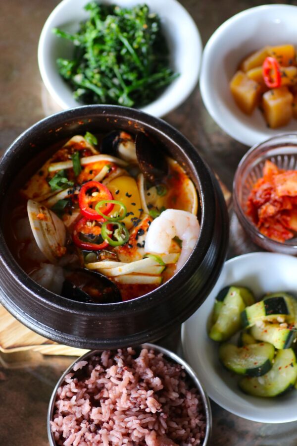 If you’re in for a kick, Bapp is the place for you. Their traditional jjampong is a seriously spicy seafood noodle soup with clams, mussels, shrimp and udon noodles. Balanced with the crunch of vegetables and the chew of shellfish and noodles, this is a hearty meal for heat-tolerant taste buds.