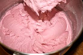 - Slowly mix in 8 cups of powdered sugar until think and creamy.