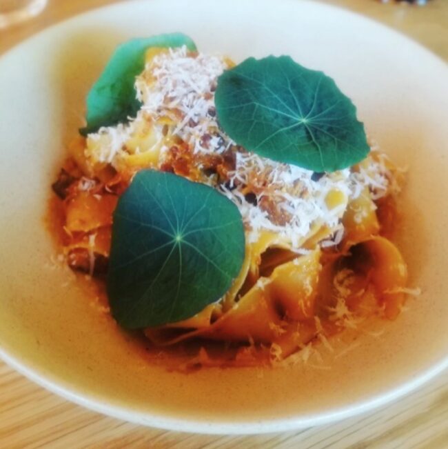 The leaves stand out and bring a different texture and flavor to a dish that you wouldn’t expect. The combination of the nasturtium leaves on the pappardelle rabbit ragu at Old Yellowstone Garage is just stunning. The crunchy leaves go great with warm dishes and salads.